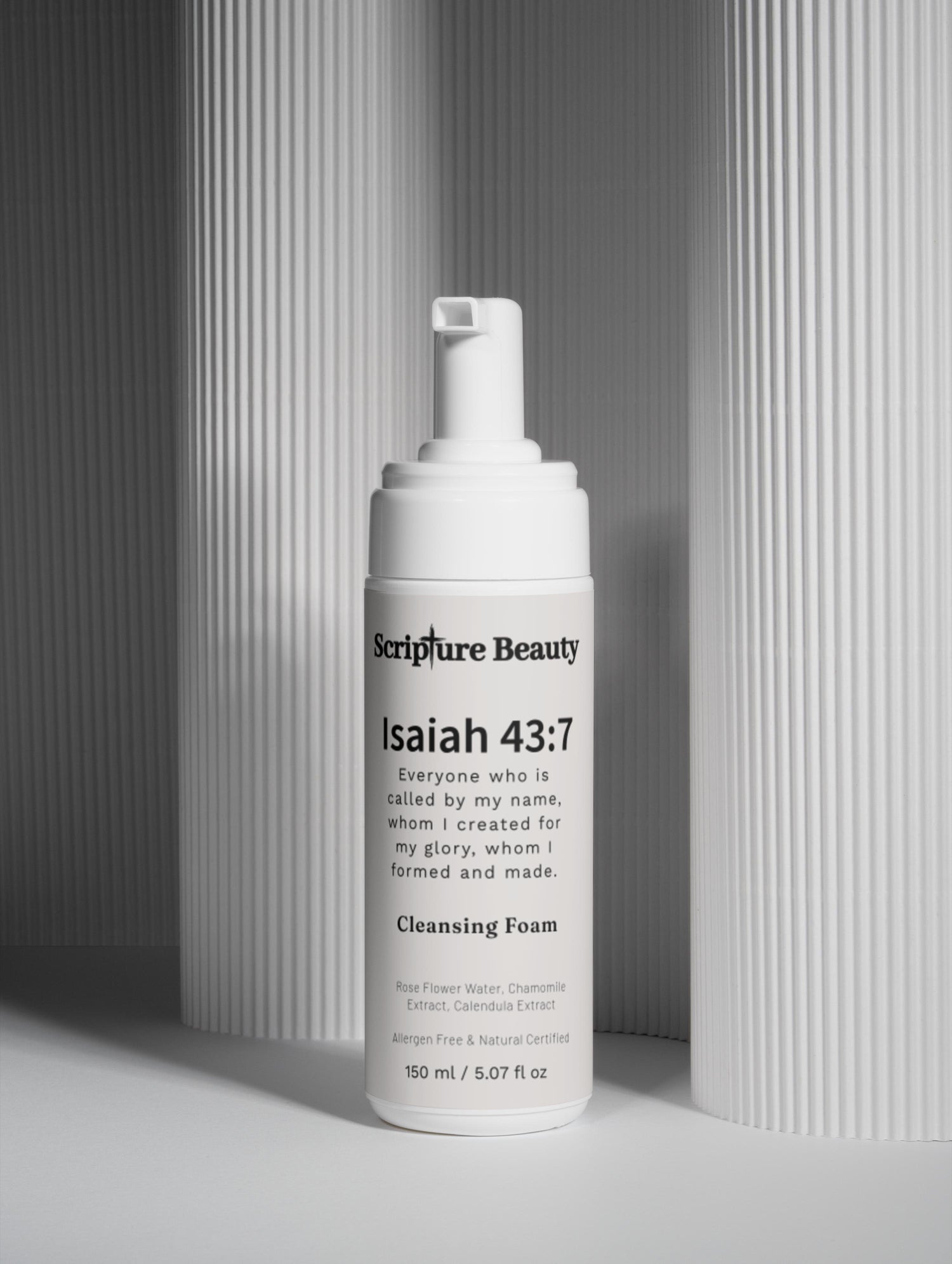 Start your morning and finish your night with Isaiah 43:7 Cleaning Foam. This minimalistic formula foams to gently cleanse make-up and impurities while leaving your skin fresh, clean and ready for your toner. It is perfect for all skin types and is allergen free.